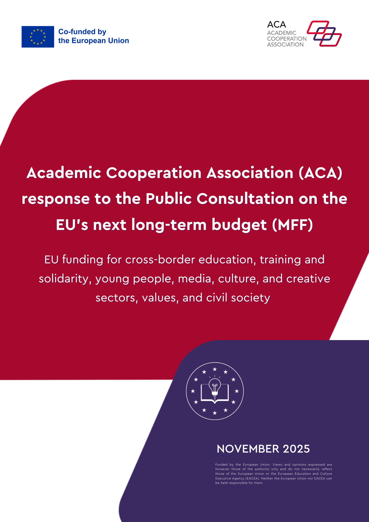 On 25 November, the Academic Cooperation Association (ACA) submitted its response to the European Commission’s consultation on the EU’s next Multiannual Financial Framework (MFF), particularly regarding EU funding for cross-border education, training and solidarity, young people, media, culture, and creative sectors, values, and civil society.